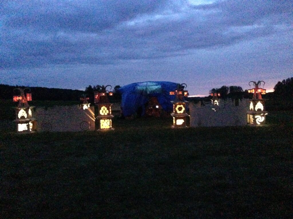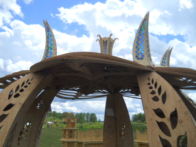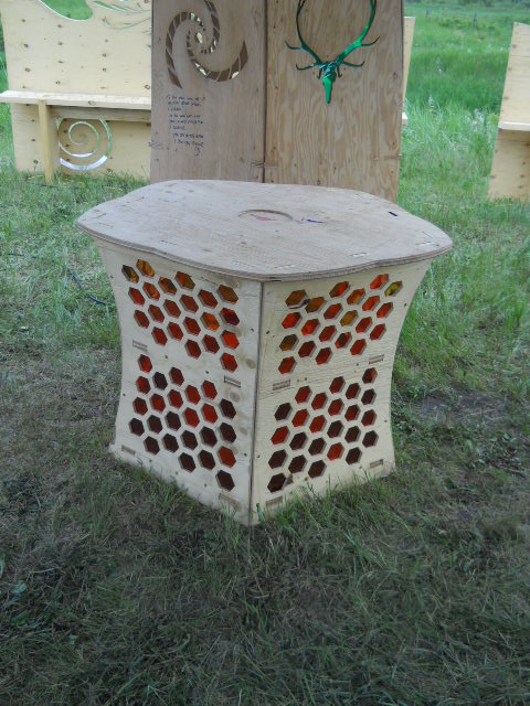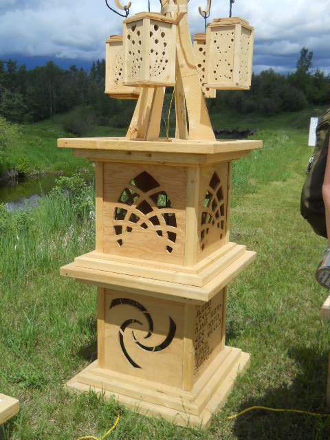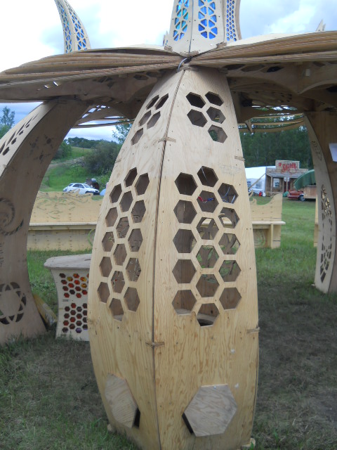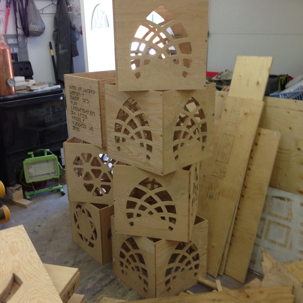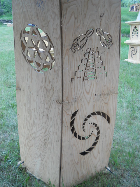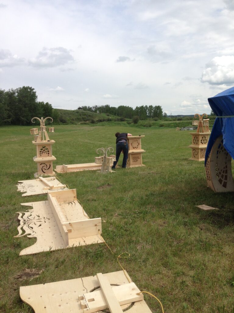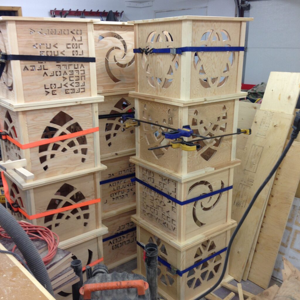 Troy built benches and corner pillars with LED lanterns to surround the main 2015 Freezer Burn Temple built by Justin Miller.