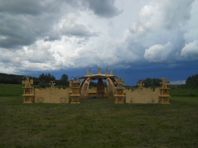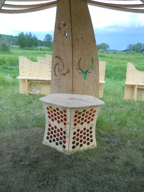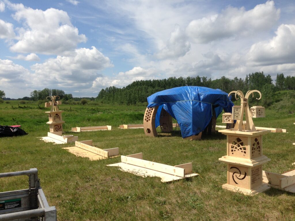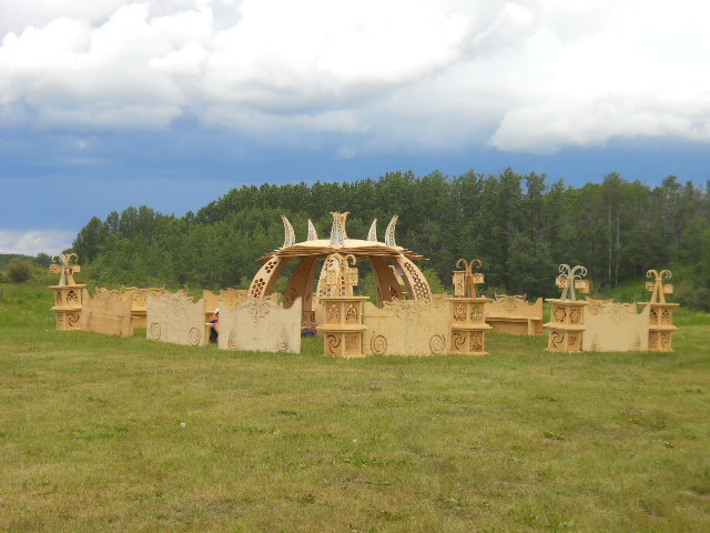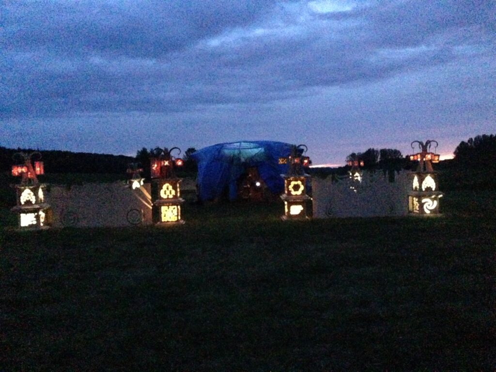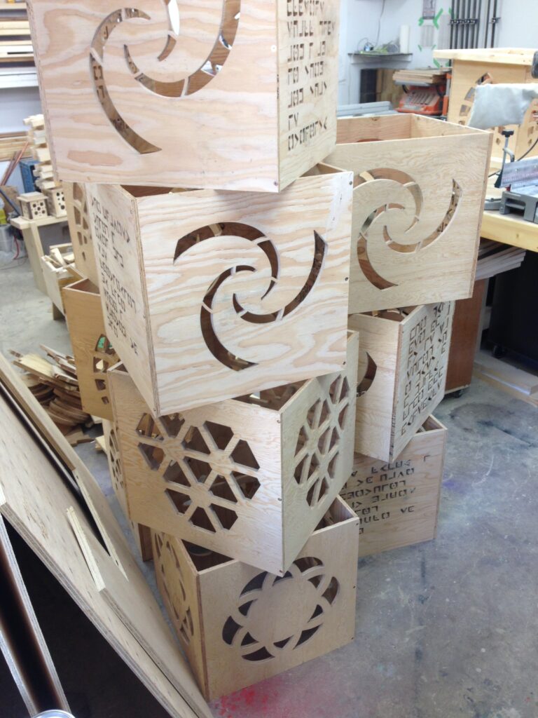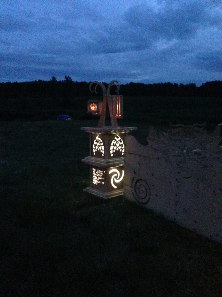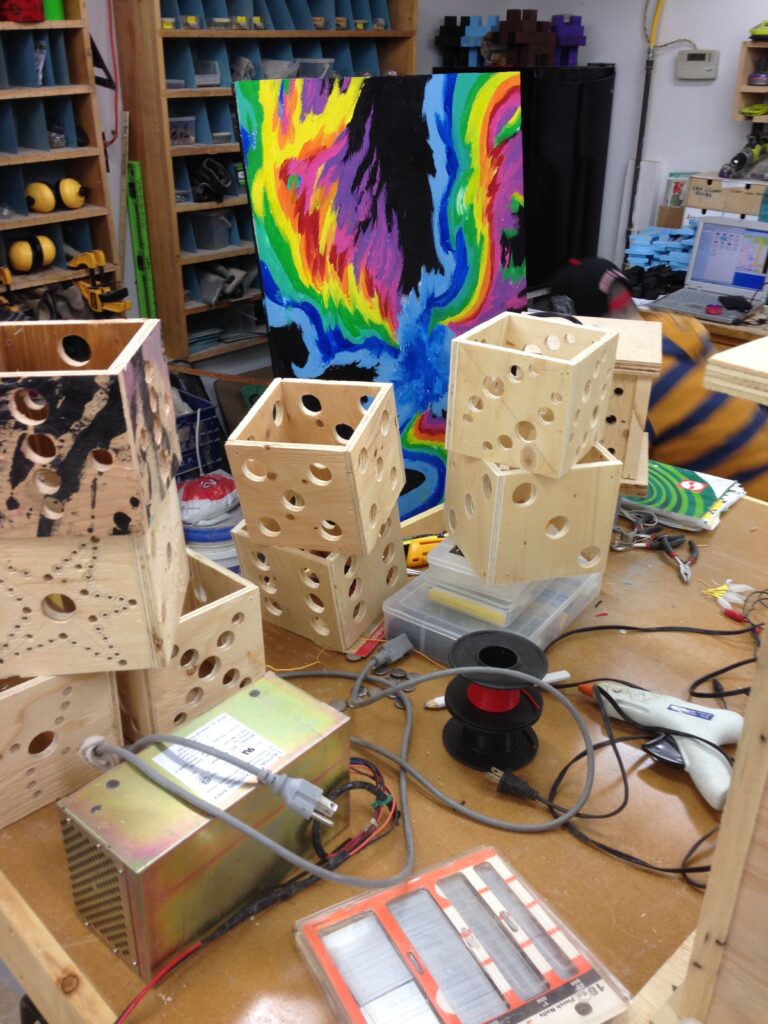 Troy built benches and corner pillars with LED lanterns to surround the main 2015 Freezer Burn Temple built by Justin Miller.