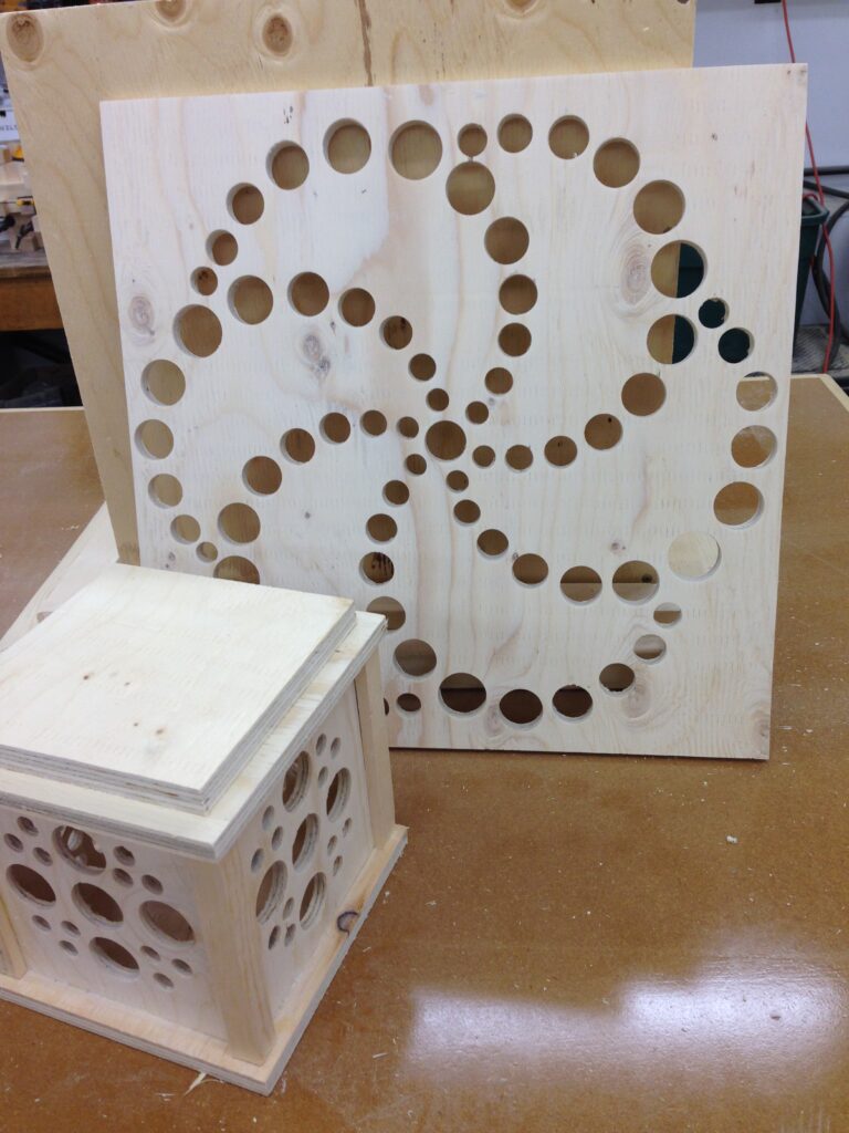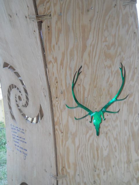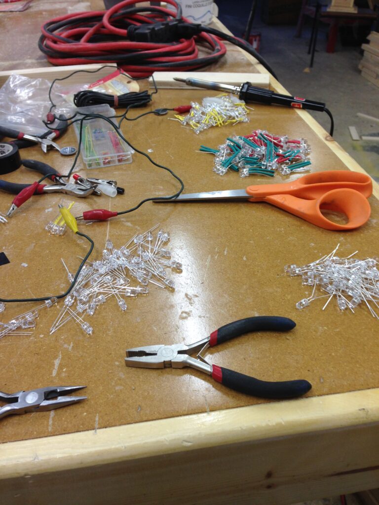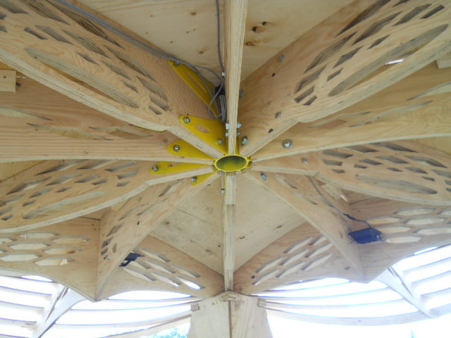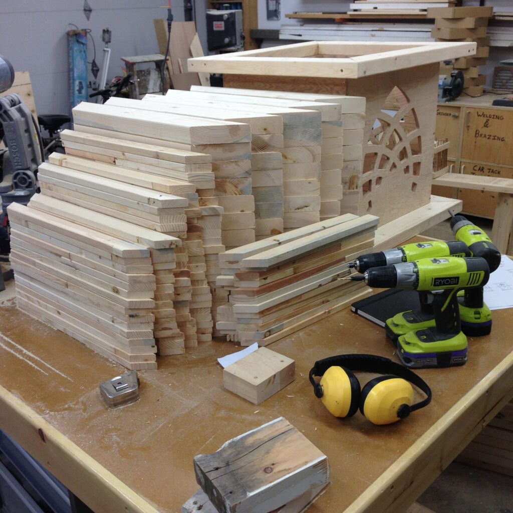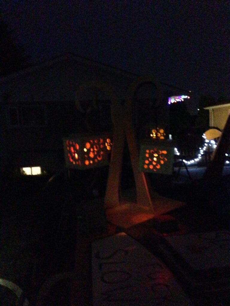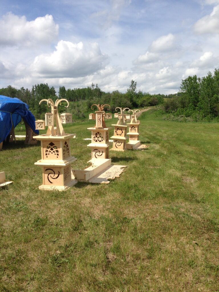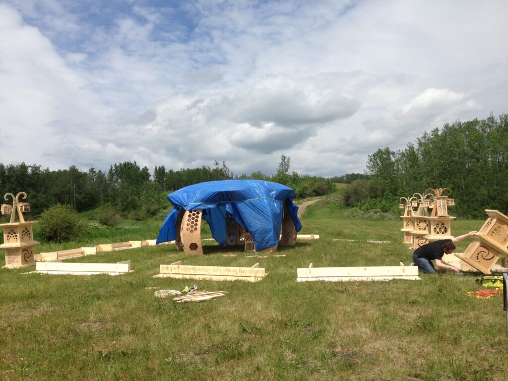 Troy built benches and corner pillars with LED lanterns to surround the main 2015 Freezer Burn Temple built by Justin Miller.