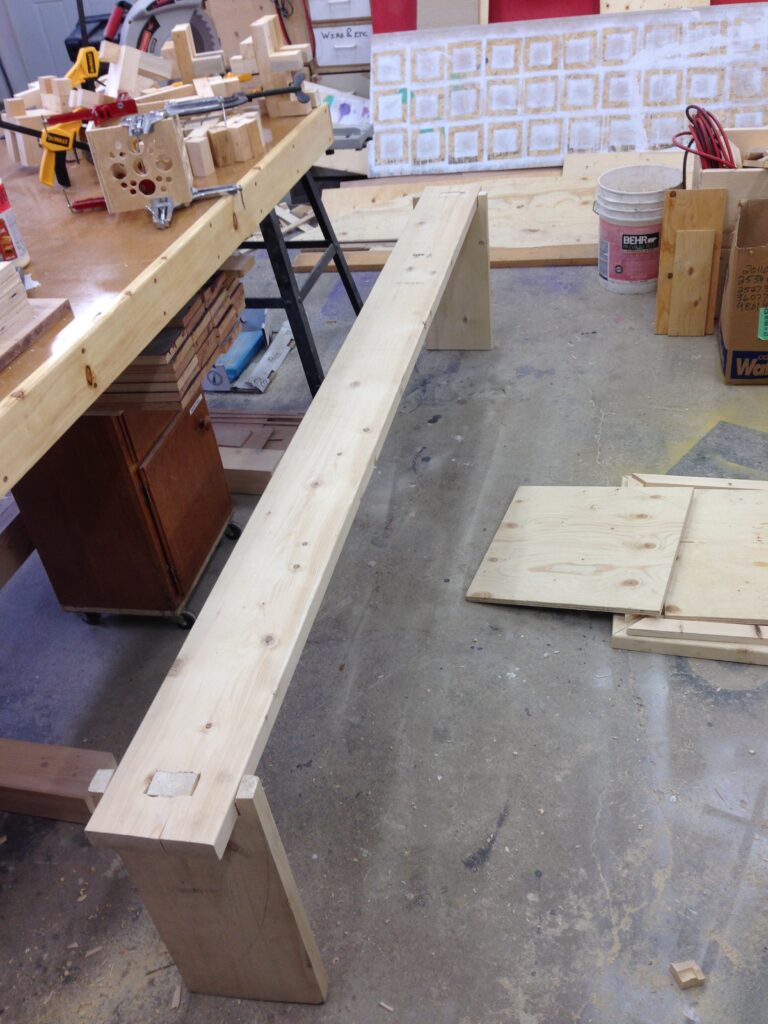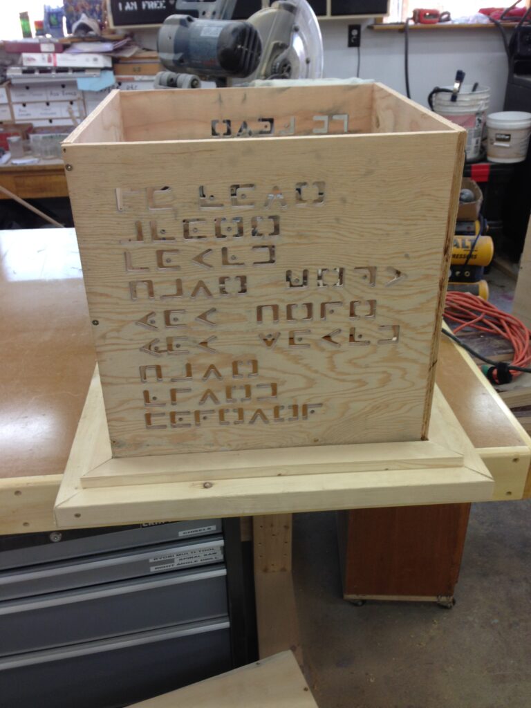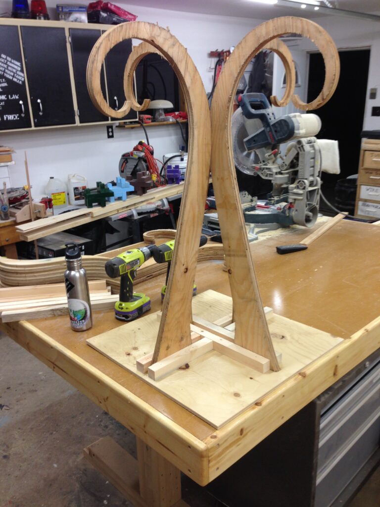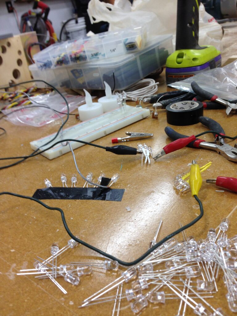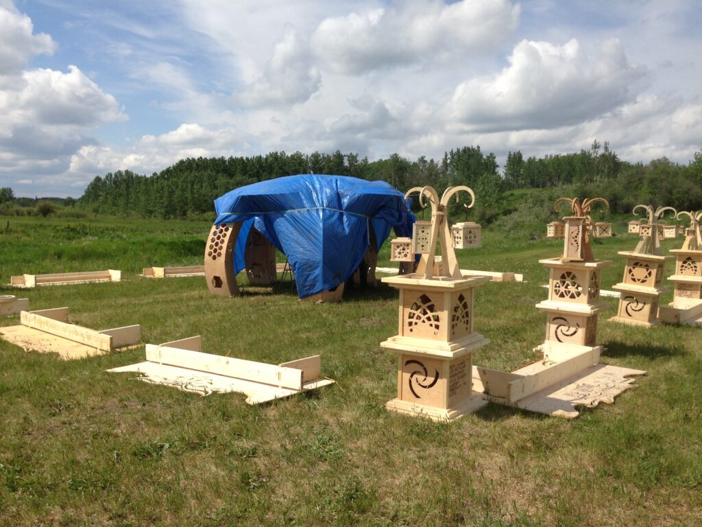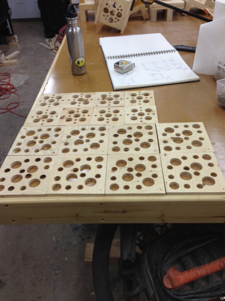 Troy built benches and corner pillars with LED lanterns to surround the main 2015 Freezer Burn Temple built by Justin Miller.