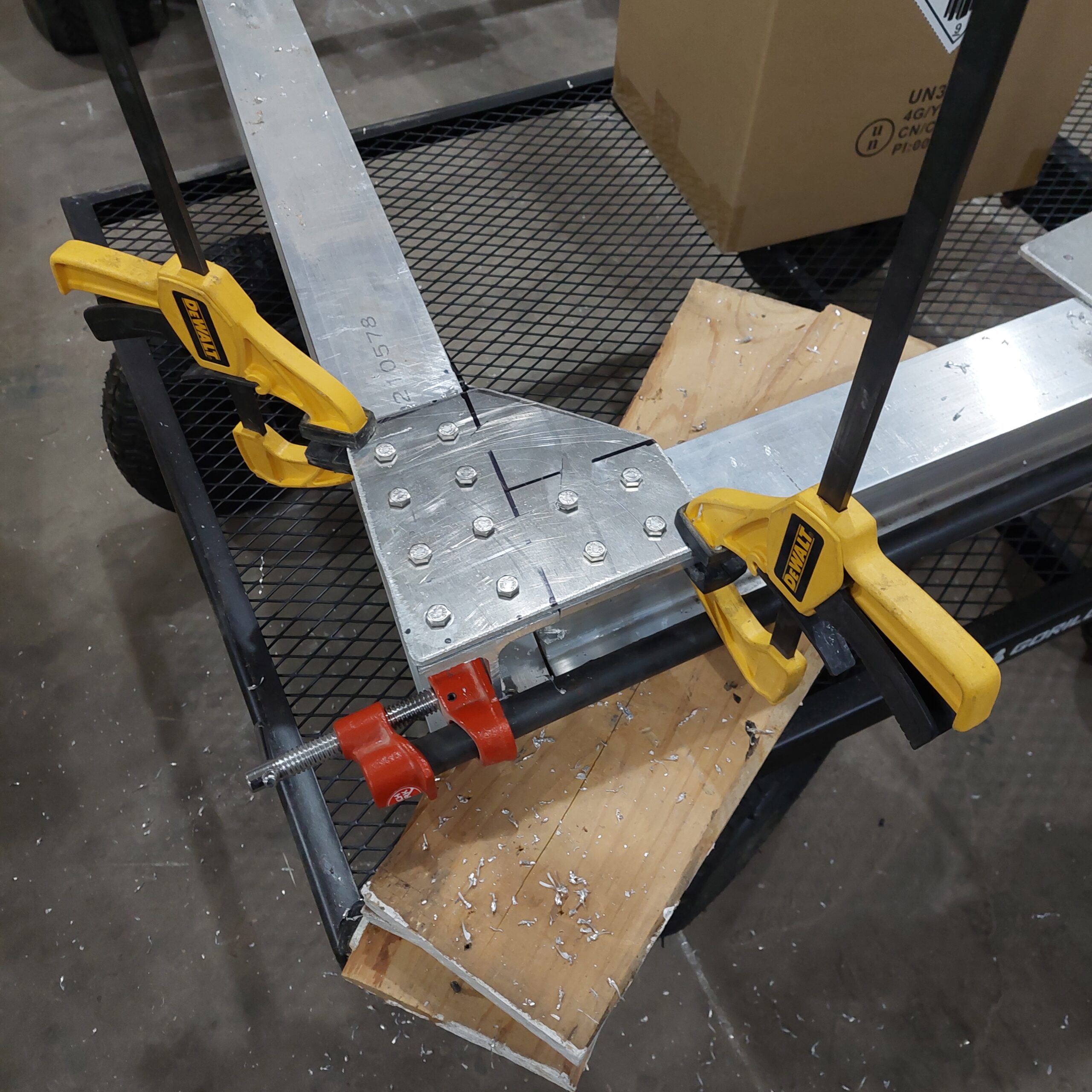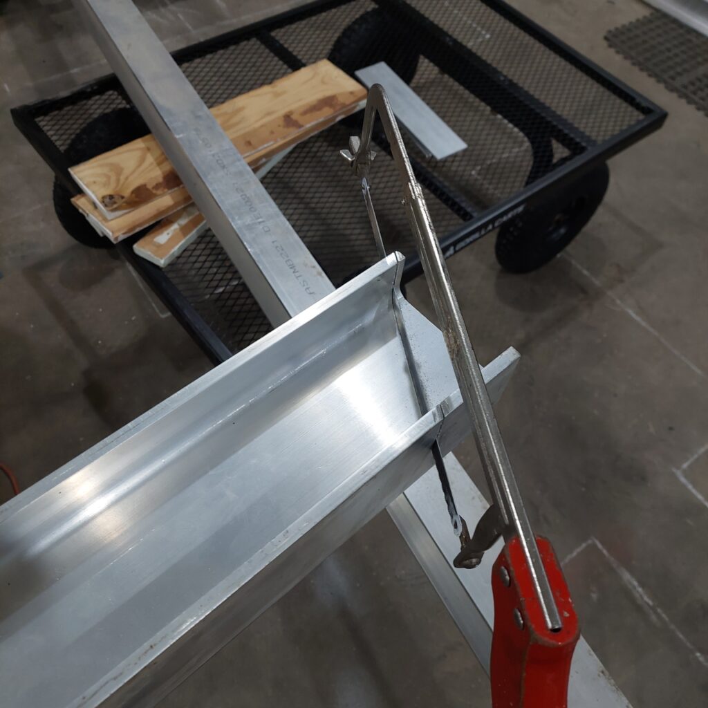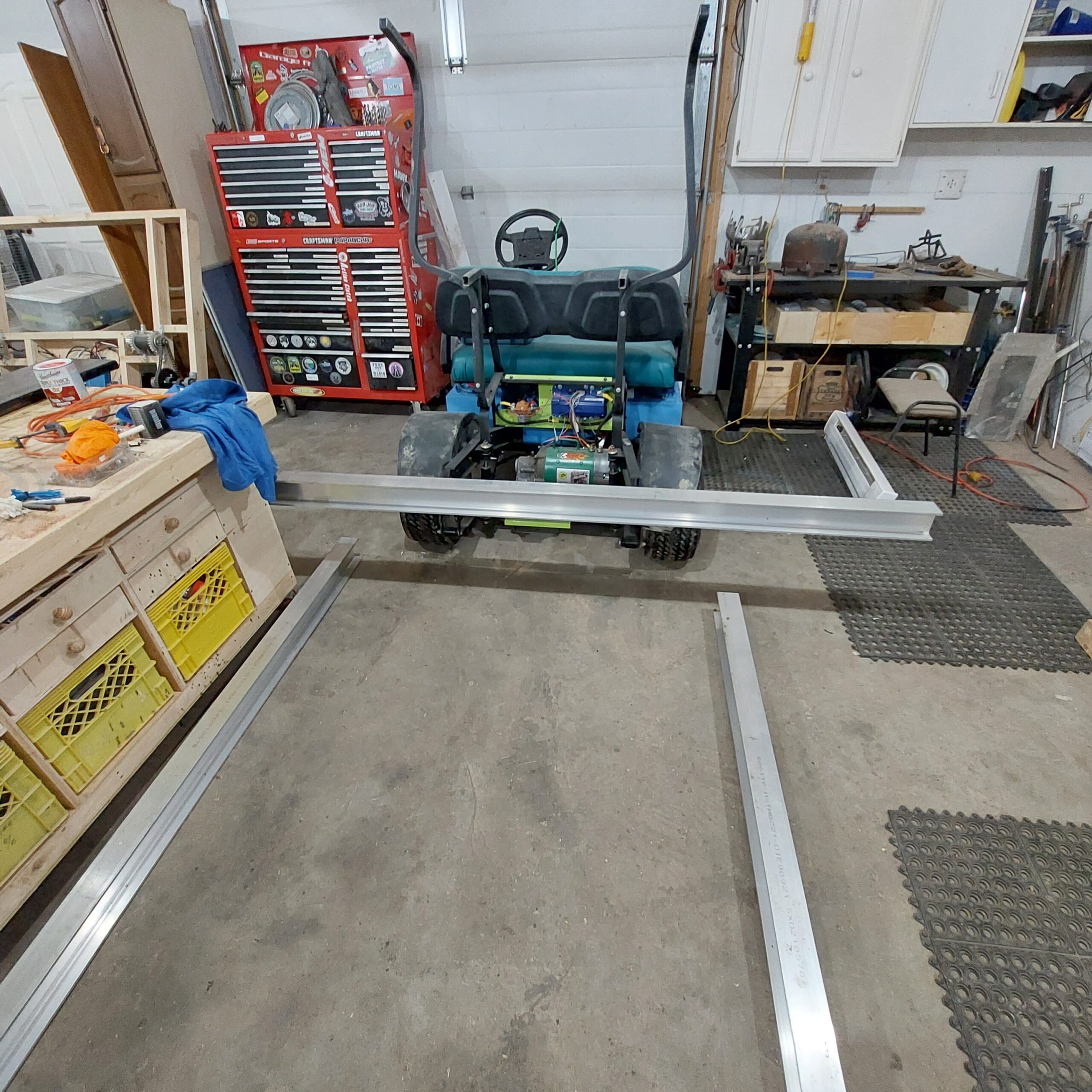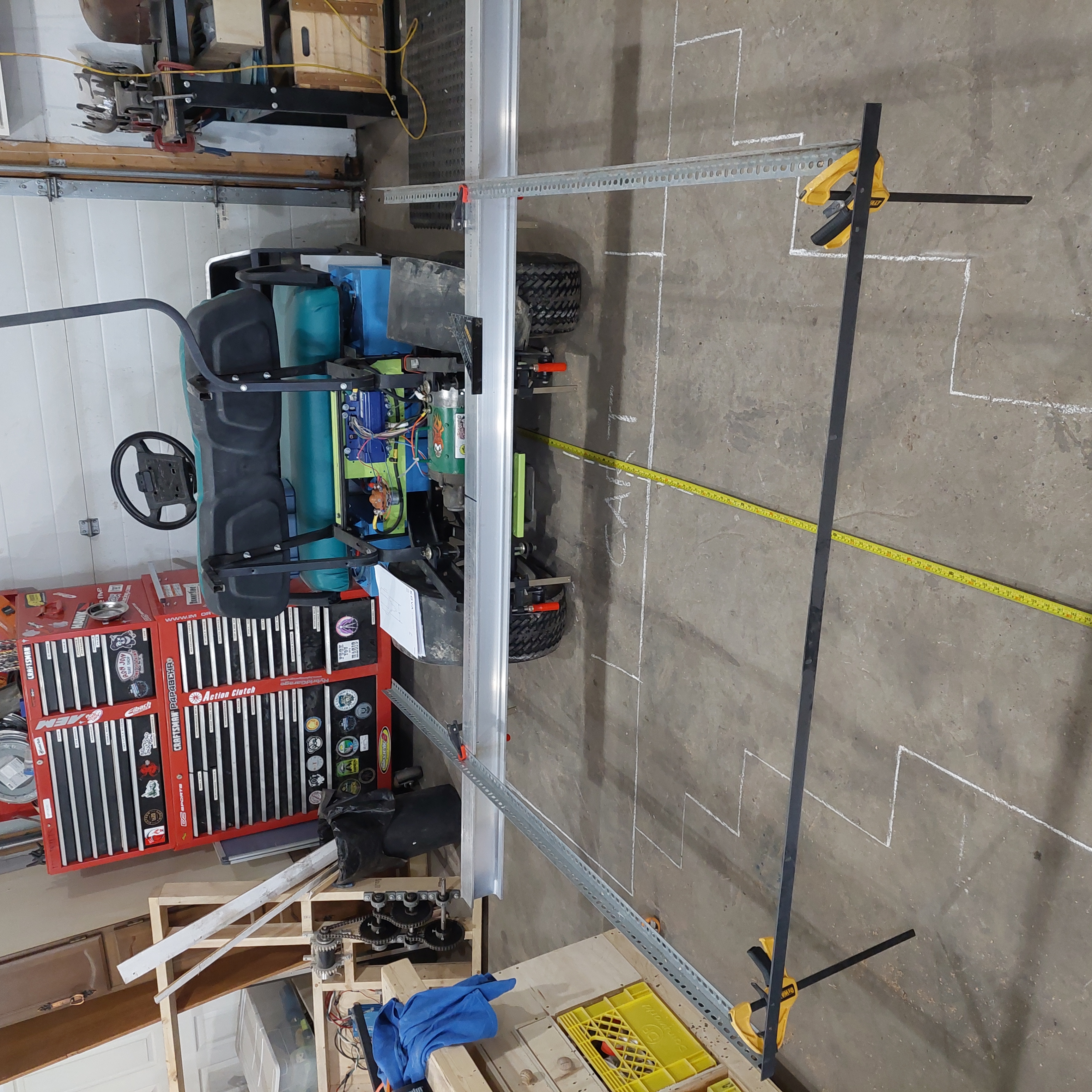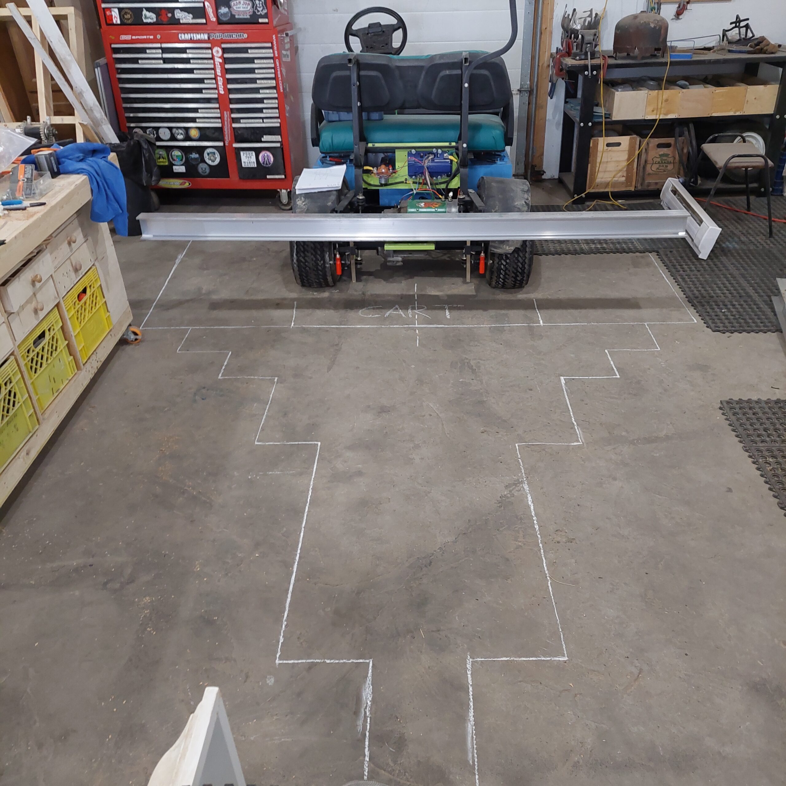 First step after stripping the cart down to a bare frame was to upgrade the suspension, motor, and speed controller. From there we added new lithium iron batteries and extended the existing frame with Aluminum I-Beams to allow us more room for passengers.