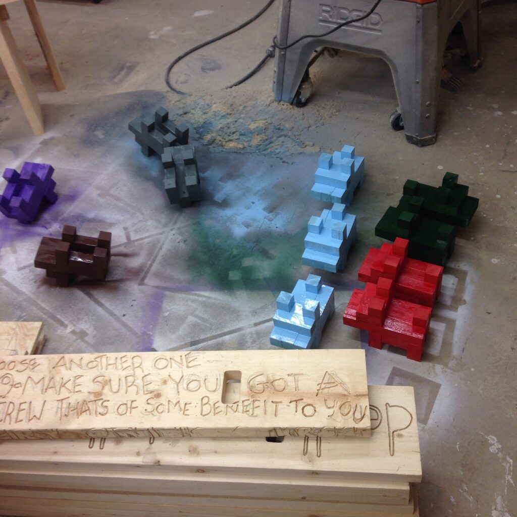 These cute little pets were distributed randomly around the festival grounds for participants to adopt. The quickly showed up everywhere from Stages, dance floors, bars and even porta potties. It’s been almost a decade since they made their first appearance and they are known to still show up randomly at community events, private parties and even kids birthdays. This might be Site E’s longest running and most successful art piece.