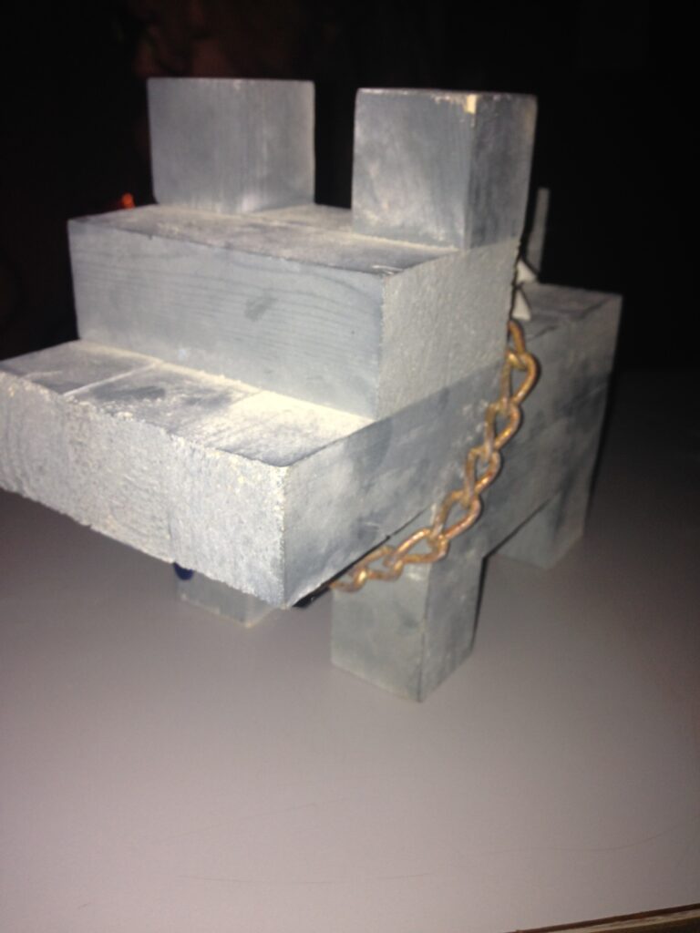 A lot of leftover 2×4 scraps, a little too much time, a couple hundred dollars worth of custom engraved dog tags……